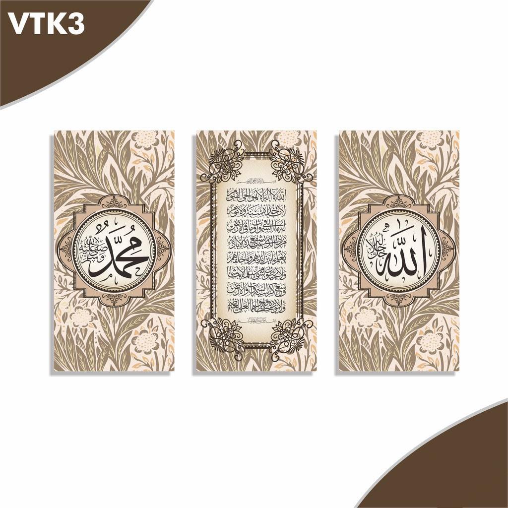 SPESIFIKASI PRODUK ? Kode Motif : VTK ? Material : Papan MDF Putih ? Cetak : Sticker Vinyl Resolusi Tinggi + Laminating (Tahan Air) ? Ukuran Papan : 15x30cm (3pcs) ? Gantungan : Besi Earpiece