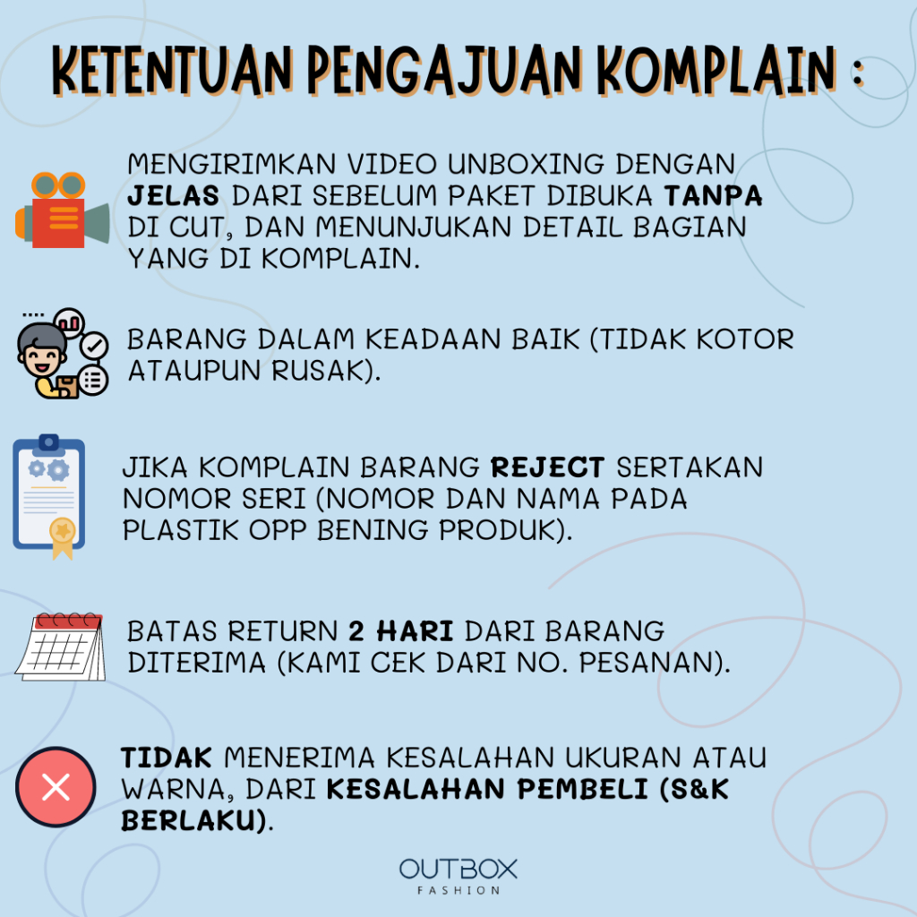 ๐๐ฒ๐๐ซ๐๐ญ ๐๐๐ง ๐๐๐ญ๐๐ง๐ญ๐ฎ๐๐ง ๐๐๐ญ๐ฎ๐ซ, ๐๐๐๐๐ ๐๐๐๐๐๐ : - ๐๐๐ง๐ ๐ข๐ซ๐ข๐ฆ๐ค๐๐ง ๐ฏ๐ข๐๐๐จ ๐ฎ๐ง๐๐จ๐ฑ๐ข๐ง๐ ๐๐๐ง๐ ๐๐ง ๐ฃ๐๐ฅ๐๐ฌ dari sebelum paket dibuka dan ๐ญ๐๐ง๐ฉ๐ ๐๐ข ๐๐ฎ๐ญ. Menunjukan Detail bagian yang dikomplain - ๐๐๐ซ๐๐ง๐ ๐๐๐ฅ๐๐ฆ ๐ค๐๐๐๐๐๐ง ๐๐๐ข๐ค, ๐ญ๐ข๐๐๐ค ๐๐๐ ๐ค๐จ๐ญ๐จ๐ซ ๐๐ญ๐๐ฎ๐ฉ๐ฎ๐ง ๐ซ๐ฎ๐ฌ๐๐ค (misal ada sobek atau kotor makeup). - ๐๐ง๐ ๐ค๐ข๐ซ ditanggung pembeli. - Jika itu murni kesalahan dari kami (salah kirim barang , barang cacat , dll) maka ongkir ditanggung oleh kami. - ๐๐๐ญ๐๐ฌ ๐ซ๐๐ญ๐ฎ๐ซ๐ง ๐ ๐ก๐๐ซ๐ข dari barang diterima (kami cek dari resi). - ๐๐ข๐๐๐ค ๐ฆ๐๐ง๐๐ซ๐ข๐ฆ๐ ๐ฌ๐๐ฅ๐๐ก ๐ฎ๐ค๐ฎ๐ซ๐๐ง.
