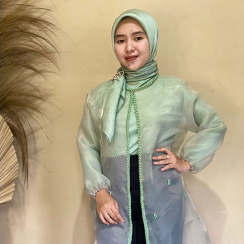 Outer Organza Motif Detail : *Bahan Organza premium *Payet jahit manual jadi lebih kuat full payet sampai belakng *Tangan balon ada karet, wudhu frendly *Kancing bagian atas