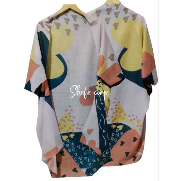 Terbuat dari bahan voal ( ada sebagian yg mix polyester ) dgn karakteristik lembut, adem, tipis sehingga nyaman dipakai so stylish utk outfit km ๐ panjang outer 80cm finishing lasercut