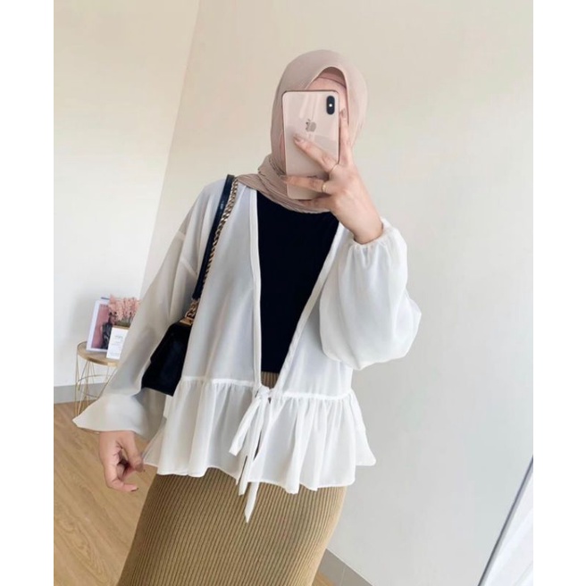 Bahan chiffon (tipis, terawang, ringan) Panjang 65cm LD 100cm Panjang lengan 53cm