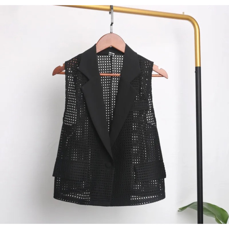 Detail Outer Sleeveless Crop Jaring jala / blazer jaring / kemeja lengan buntung jala jaring korea harajuku