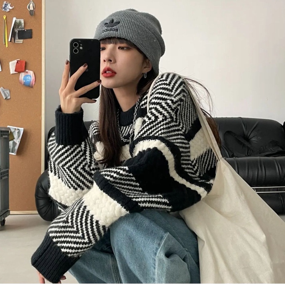 Detail Outerwear Rajut Stripe Oversize Wanita Lengan Panjang Kaos Import Wanita