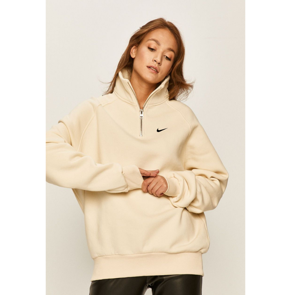 Outerwear Sweater Zipper Nike Logo Print / Sweatshirt Halfzip Distro Basic Unisex / Half Zipper Nike Beige