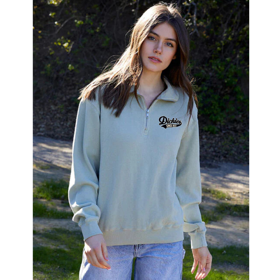 Detail Outwear Sweater Crewneck Zipper Dickies Logo Print / Jaket Halfzip Pria Wanita / Sweatshirt Berkerah / Sweater Half Zip Warna Mint