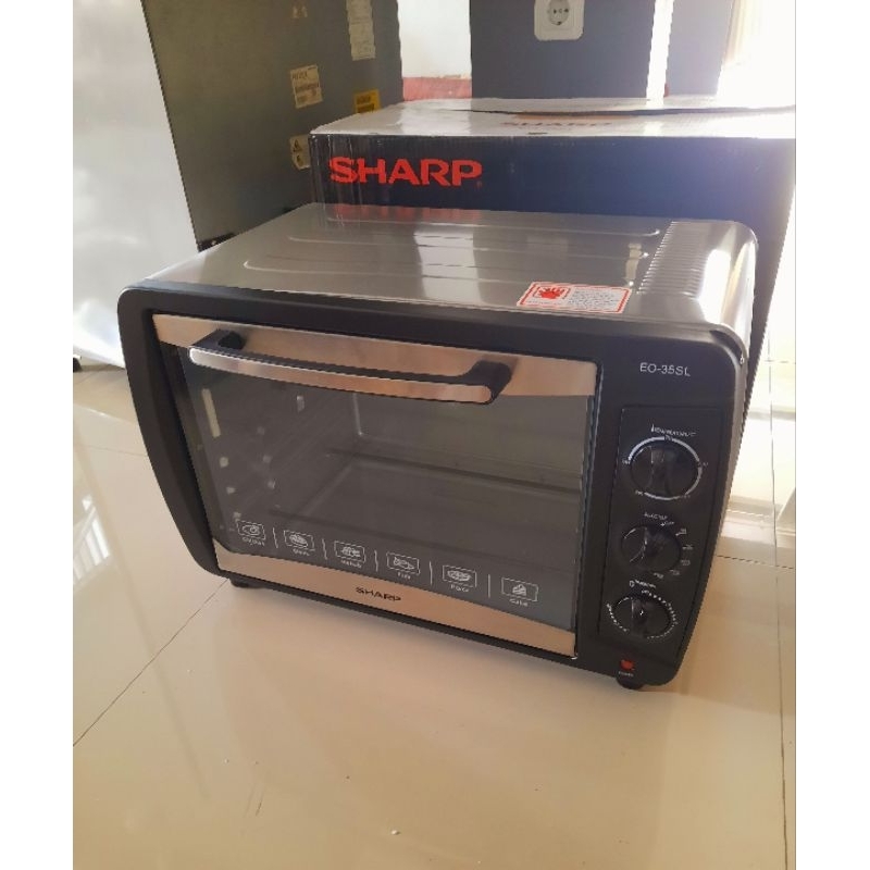 Barang Cuci gudang pabrik normal minus lecet body dikit2 garansi toko 1 bulan Harganya tak set GRATIS ONGKIR wilayah Jawa pengiriman barang via cargo ya Untuk pengiriman luar Jawa bisa chat dulu untuk memastikan tambahan ongkir nya Pilih expedisi yg termurah aja buat paket tracking di toko online ini Sharp EO-35SL adalah oven multifungsi. Oven yang bisa digunakan untuk bermacam acara masak memasak anda. Fungsinya diantara lain adalah untuk memanggang kue, roti, daging baik ayam maupun ikan, kemudian produk Sharp ini memiliki dual heater yang memiliki fungsi untuk membuat makanan yang anda sedang panggang akan terpanggang secara merata. Dengan fitur ini, makanan yang sebelumnya dalam kondisi dingin, atau mungkin saja baru diambil dari kulkas, bisa Anda santap dengan hangat-hangat di tiap bagiannya. Dilengkapi juga dengan thermostat yang memiliki fungsi untuk mencegah terbakarnya pada mesin jika terjadi panas yang berlebihan atau overheating. Temperatur Kontrol & Timer Oven Sharp EO-35SL ini sudah dilengkapi temperatur control hingga 250 derajat. Jadi anda dapat memanggang sesuai dengan kebutuhan temperature yang diinginkan agar sesuai tidak terlalu panas maupun tidak terlalu rendah suhunya. Fitur timer pada Oven Listrik Sharp EO-35SL yang sangat membantu bagi ibu rumah tangga yang sibuk mengurus pekerjaan rumah lainnya, jadi timer ini akan membantu sekali apabila masakan atau makanan sudah selesai terpanggang, oven akan otomatis mati. Yang diperoleh Dalam Paket Apabila anda membeli produk Sharp EO-35SL ini, dalam dus nya ada beberapa part untuk memanggang diantaranya adalah Baking Tray, rotisserie rod handle dan fork, wire rack dan tray handle. Cukup lengkap bukan? Material Stainless Steel & Konsumsi Listrik Material Stainless steel yang diaplikasikan pada Heating element menjadikannya awet dan tahan karat. Oven listrik Sharp EO-35SL mengkonsumsi daya 1500 watt, hal tersebut cukup wajar Karena kapasitas tampung 35 liter