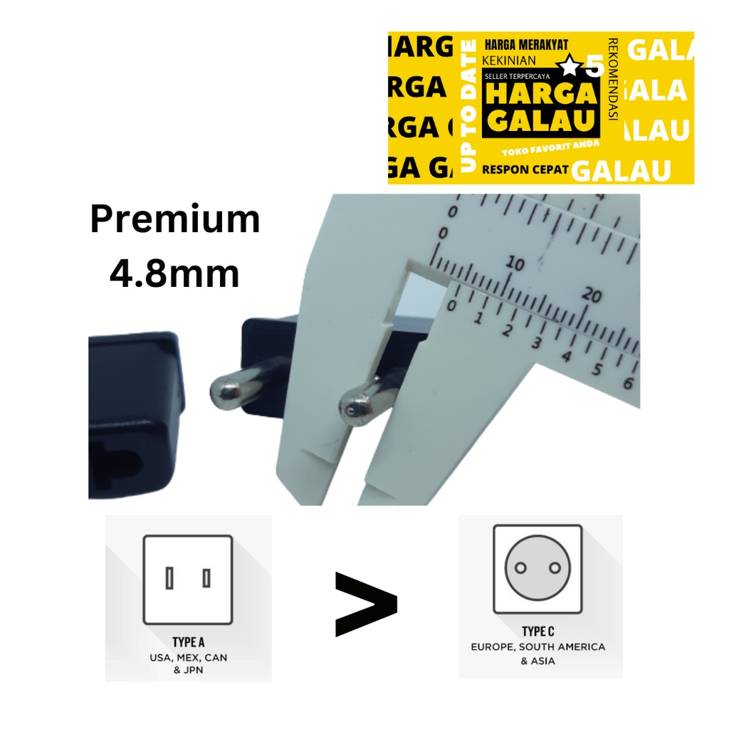 Over Steker Bulat Kaki Dua Premium Narken / Colokan Gepeng ke Bulat Premium / Kaki Bulat Diameter 4.8mm Konferter US JPN to ASIA EU TIPE A to TIPE C