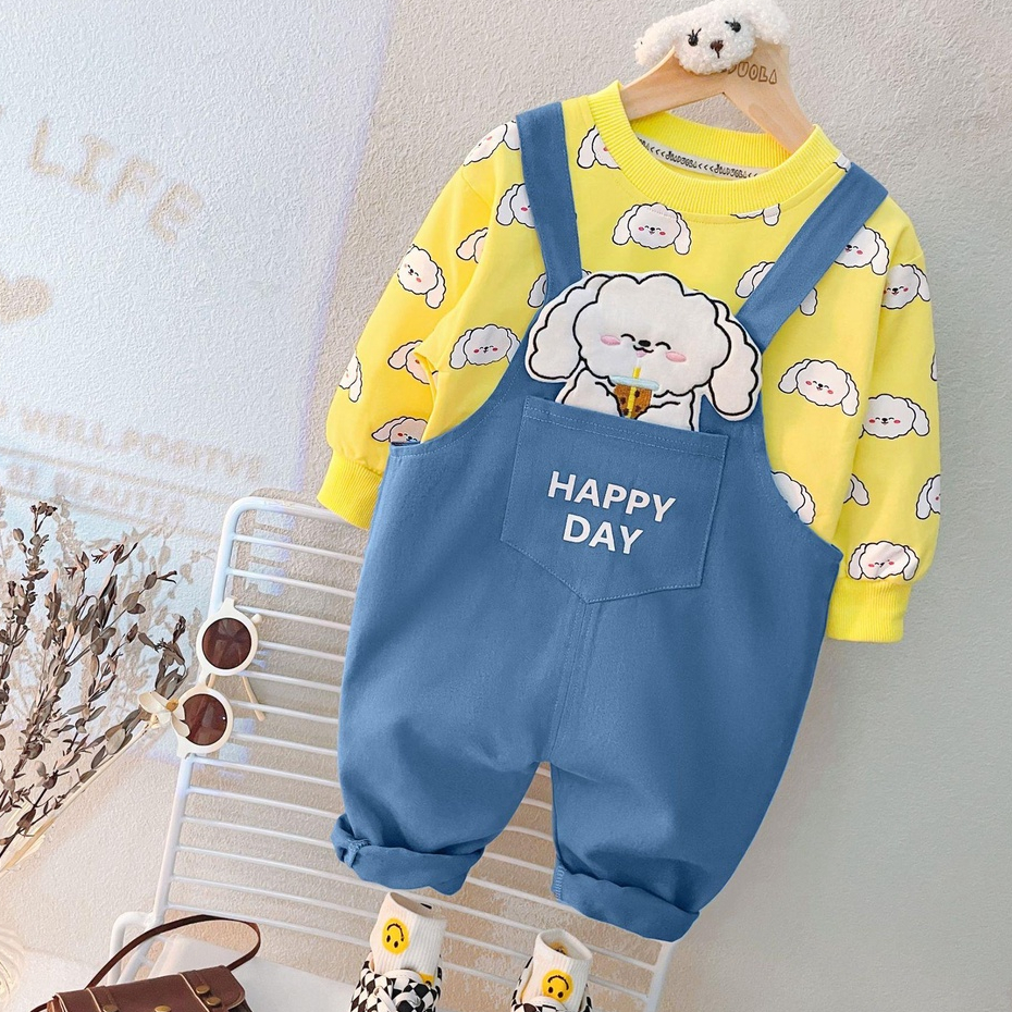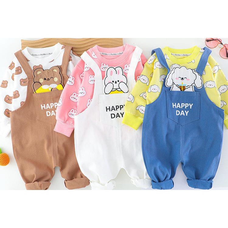 Setelan Overall Anak UNISEX (Bisa Boy and Girl) - 1pc - Kaos Sweater Baby tery Lengan panjang - 1pc - Overall katun - 2 kancing penyesuaian Bahan Dinamis sehingga Nyaman dipakai Anak2 Import quality - 100% baru