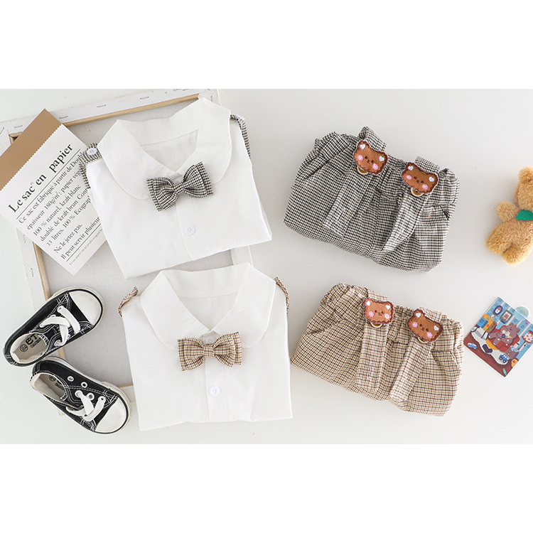 Setelan Overall Anak Laki Laki : - 1pc - Kemeja Katun Lengan panjang + Dasi (bisa lepas) - 1pc - Overall katun - 2 lubang kancing penyesuaian Bahan Ringan dan Dinamis sehingga Nyaman dipakai Anak2 Import quality - 100% baru