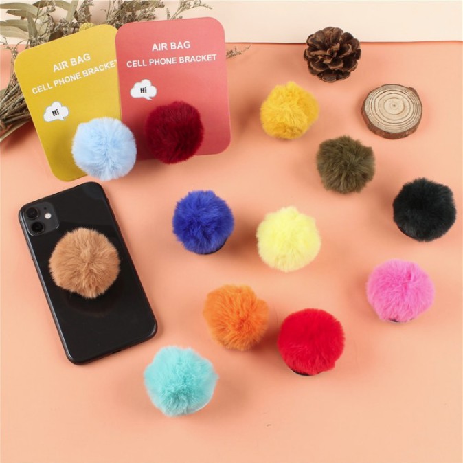 Popsocket Bulu Griptok HP 3D Pompom Murah Pop Socket Pom Pom Lucu Import