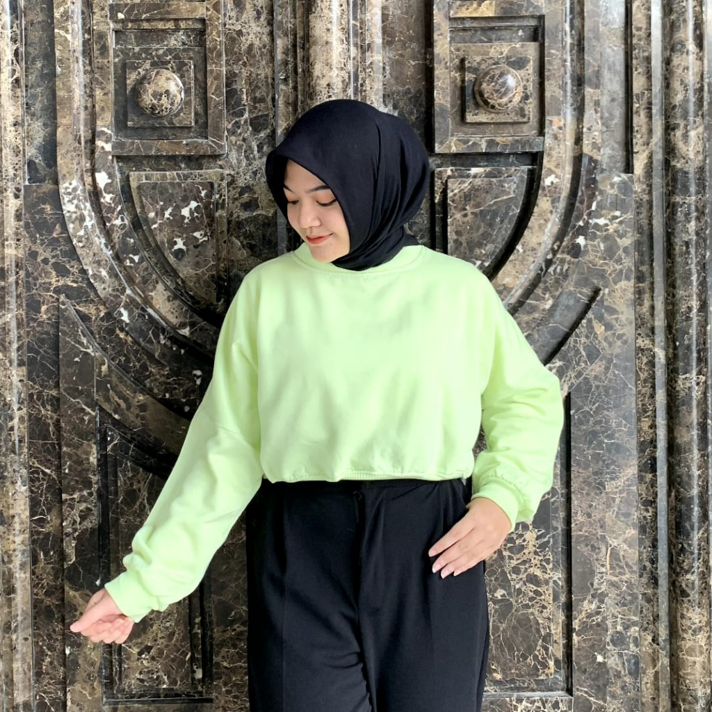 Detail OVERSIZE CROOP CREWNECK HIJAU MINT II SWEATER WANITA CROOP II CN