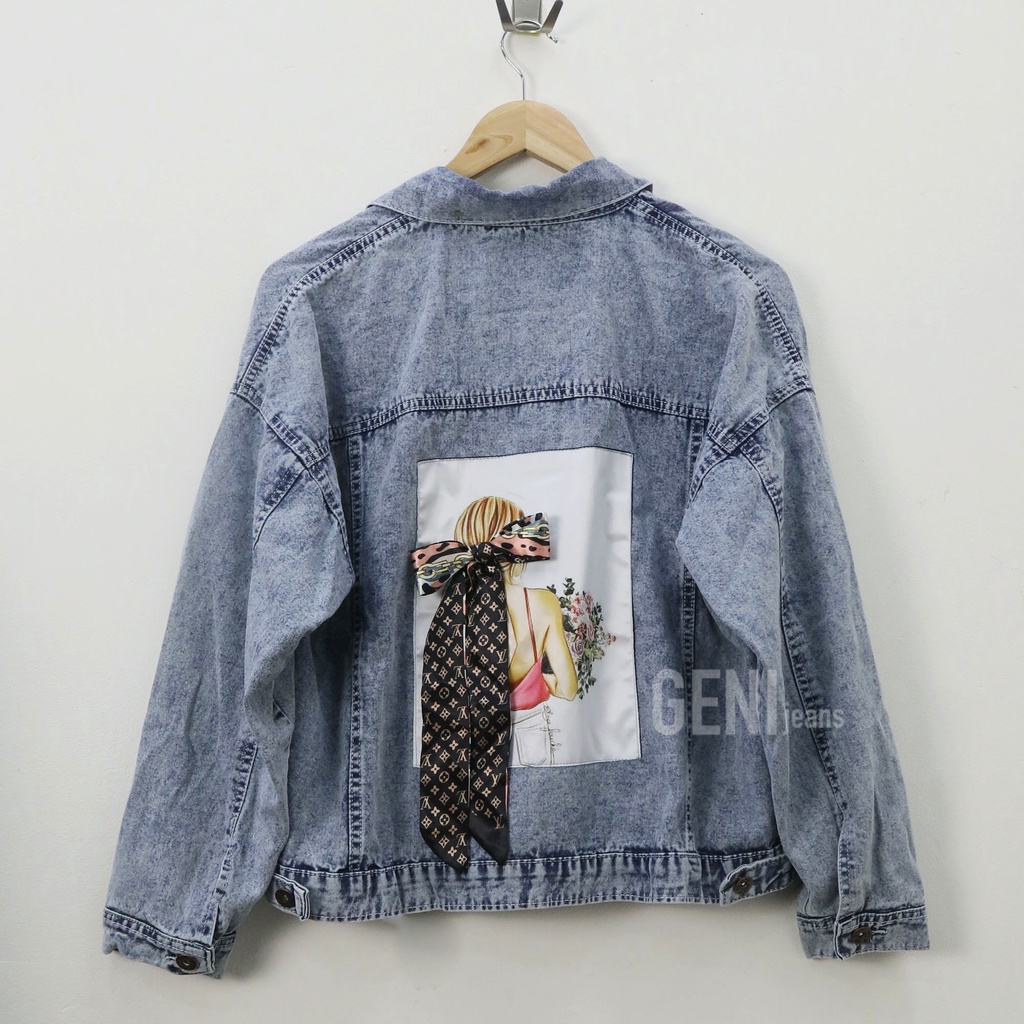 Detail Oversize rimo jacket jeans wanita by Genijeans