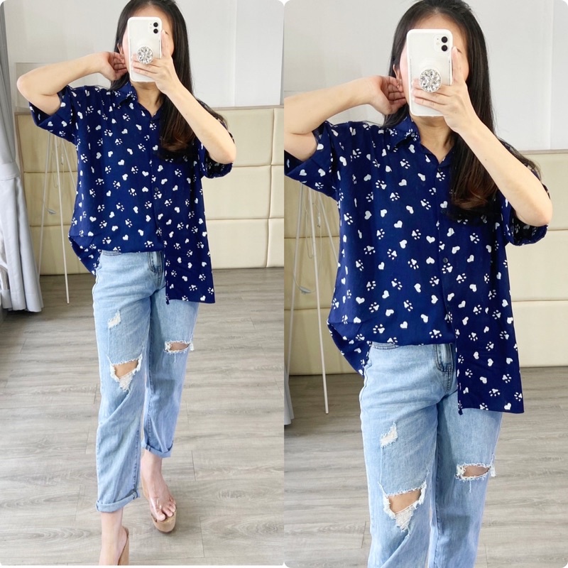Your browser does not support the video tag.Video perkenalan produk oversize shirt / summer shirt / kemeja rayon wanita lengan pendek / kemeja rayon jumbo LD 120. Sumber: Shopee.