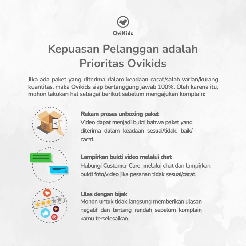HARAP VIDEOKAN SEBELUM MEMBUKA PAKET JIKA TIDAK ADA BUKTI UNBOXING KAMI TIDAK BERTANGGUNG JAWAB ATAS KEKURANGAN TERSEBUT