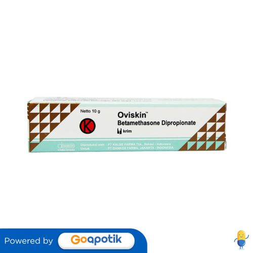 Deskripsi : PENGGUNAAN OBAT INI HARUS SESUAI PETUNJUK DOKTER. Untuk terapi psoriasis, dermatitis, eksim, liken planus, dan pruritus anogenital. Digunakan untuk lesi yang basah atau lembab dan akut | Komposisi : Tiap gram krim mengandung Betamethasone dipropionate 0,5 mg | Dosis : ATURAN PAKAI HARUS SESUAI DENGAN PETUNJUK DOKTER. Oleskan tipis 1-2 kali sehari pada daerah lesi, diberikan pada pagi dan malam hari. Penggunaan tidak lebih dari 4 minggu | Indikasi : Untuk terapi psoriasis, dermatitis, eksim, liken planus, dan pruritus anogenital. Digunakan untuk lesi yang basah atau lembab dan akut | Perhatian Khusus : Setelah diberikan obat, kulit jangan ditutup rapat dengan kasa pembalut, jangan menggunakan obat ini terus menerus dalam jangka lama, karena dapat menyebabkan superinfeksi, meskipun obat ini digunakan secara topikal, hati-hati menggunakan obat ini untuk wanita hamil dan ibu menyusui. Hal ini karena, kedua obat penyusun betasin diketahui berefek buruk terhadap perkembangan janin, terutama pertumbuhan tulang, dengan alasan yang sama, hindari menggunakan obat ini untuk anak di bawah usia 2 tahun, hentikan penggunaan obat ini jika terjadi iritasi atau reaksi hipersensitivitas lainnya, jangan digunakan pada area tubuh yang luas atau jangka waktu lama, hindari kontak dengan mata. | Kemasan : Tube 10 gram krim | NIE : DKL9004406829A1