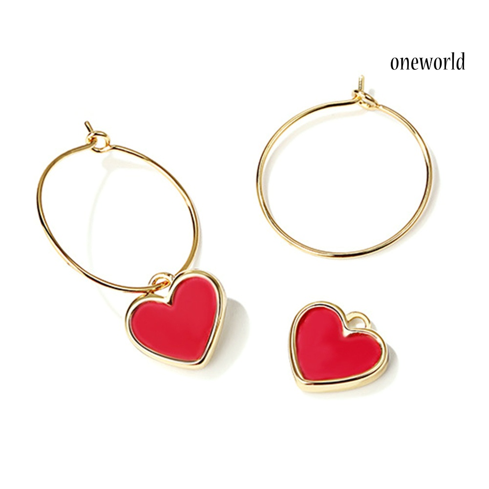 Detail OW@ Fashion Party Women Red Love Heart Pendant Hoop Earrings Jewelry Birthday Gift