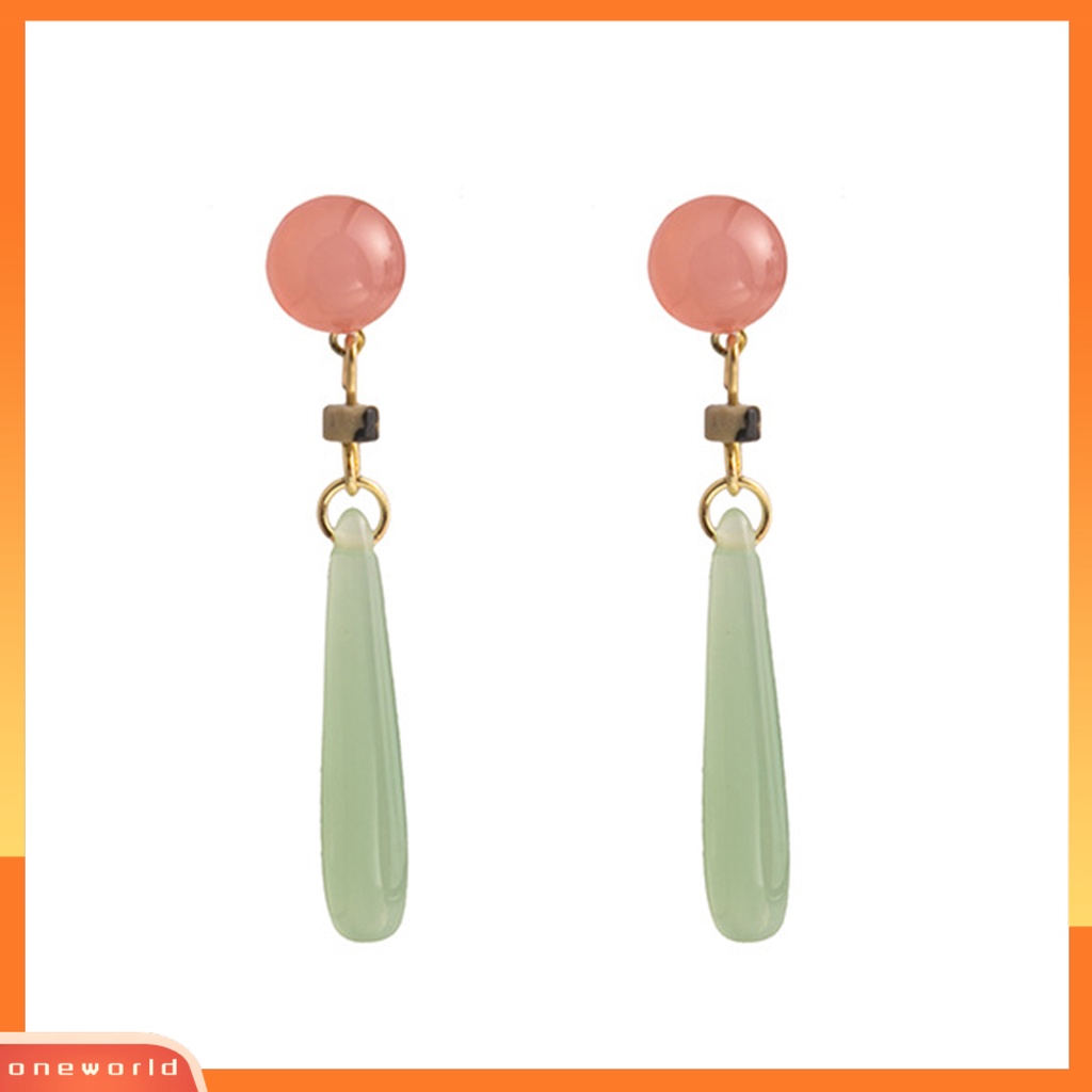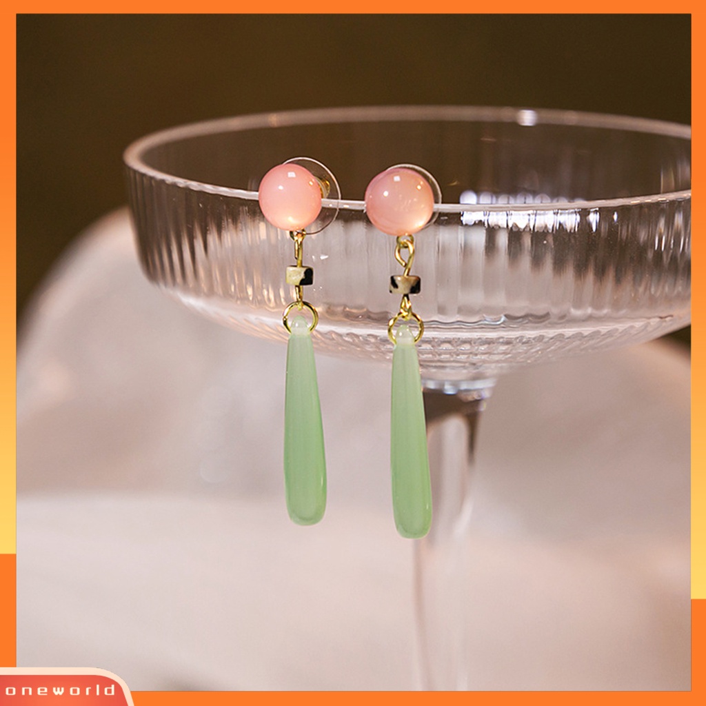 Detail [OWR] 1pasang Anting Menjuntai Gaya China Elegan Mulia Giok Imitasi Kalsedon Manik Drop Earrings Aksesoris Perhiasan