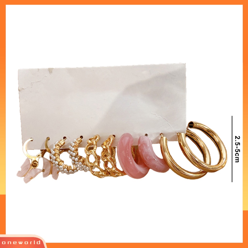 Detail [OWR] 5pasang Wanita Anting Tindik Eye-catching Tahan Aus Geometris Halus Pesona Hias Anti Karat Kupu-Kupu Hoop Lingkaran Anting Perhiasan Aksesoris