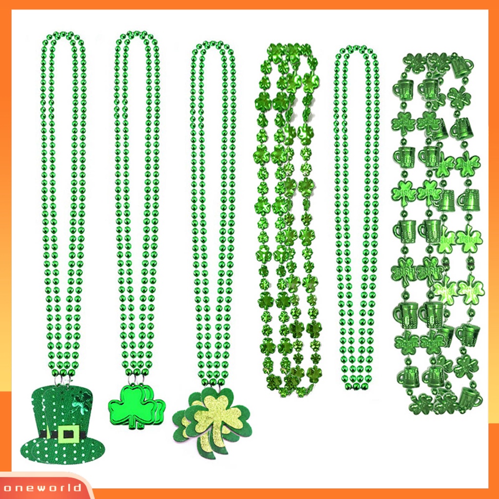 Detail [OWR] Shamrock Kalung Beruntung Semanggi Hijau Topi Surat Panjang Bulat Manik-Manik Saint Patrick's Day Clover Dewasa Kalung Perlengkapan Pesta
