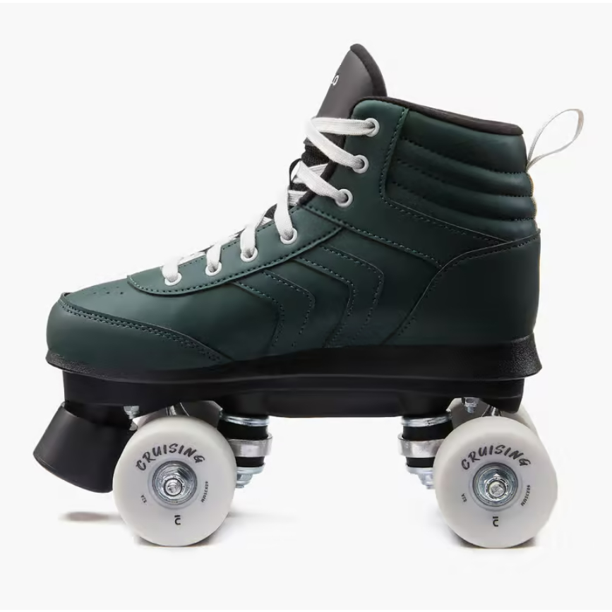OXELO Quad 100 Sepatu Roda Dewasa Liner Dengan Bantalan Busa Tebal ----------- Meskipun mungkin hanya terlihat seperti sepatu dengan roda, sepatu roda quad bergaya vintage ini sangat ideal untuk untuk menemani anda meluncur. Atasan dari: 60.0% Poliuretan (PU), 40.0% Asetat; Sol: 100.0% [EN] Aluminium; Roda ILS: 70.0% Poliuretan (PU), 30.0% Polipropilena (PP); Lining dan kaos kaki: 100.0% Polyethylene Terephtalate (PET); Sol Bagian Luar dari: 100.0% Polivinil klorida (PVC).