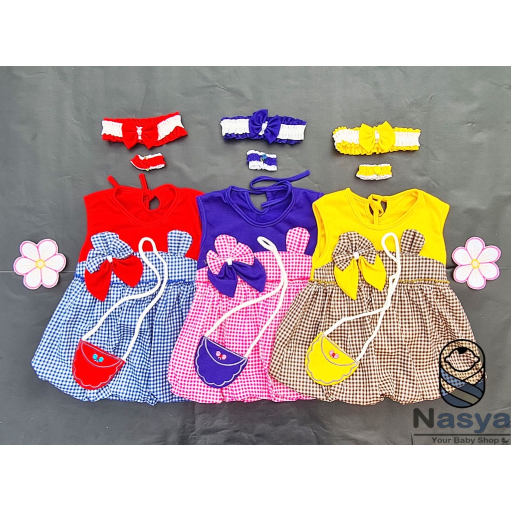 Dress Baju Bayi + BANDANA + GELANG + TAS bayi 0-6 bulan (tergantung besar anak ya bun) stok sesuai foto ya :)