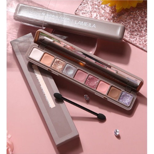 Detail PA Lameila Korean Eyeshadow Palette 9 Warna Matte Pigmented Eyeshadow Murah Glitter Eyeshadow 3600 AK095