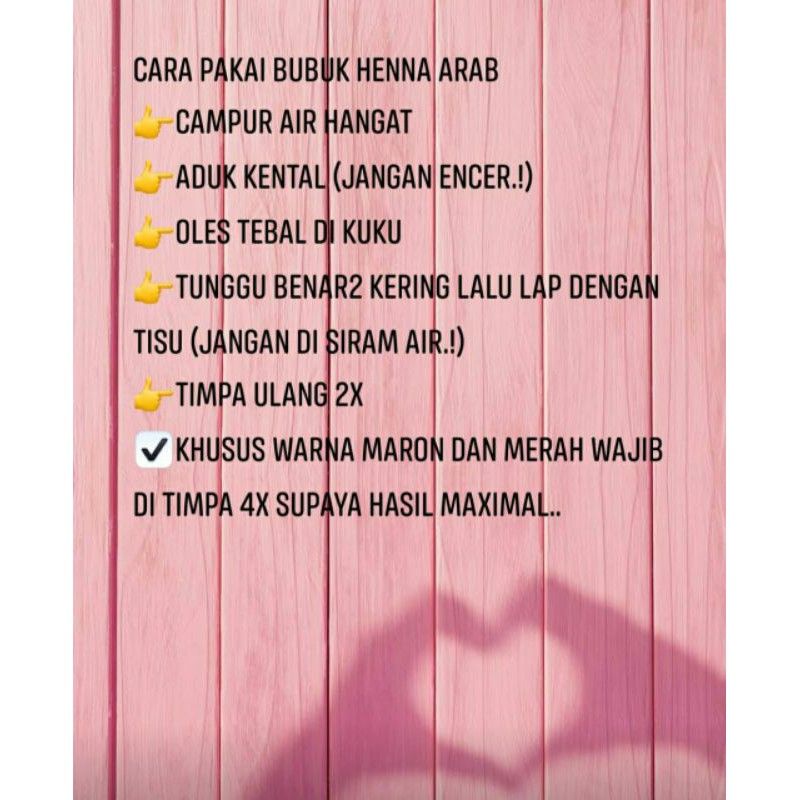 CARA PAKAI BUBUK HENNA ARAB 👉CAMPUR AIR HANGAT 👉ADUK KENTAL (JANGAN ENCER.!) 👉OLES TEBAL DI KUKU 👉TUNGGU BENAR2 KERING LALU LAP TISU (JANGAN DI SIRAM AIR.!) 👉TIMPA ULANG 2x