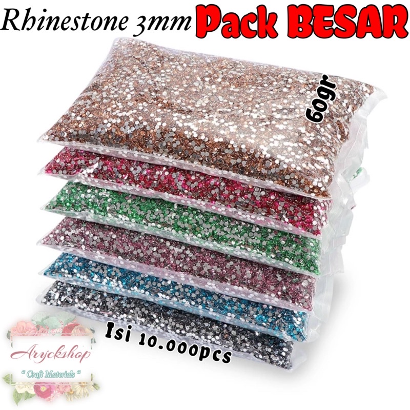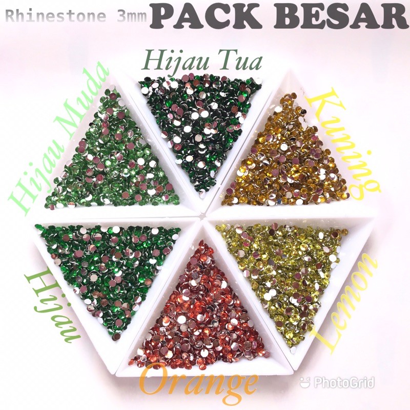 Detail PACK BESAR RHINESTONE 3MM isi 10.000pcs Manik manik Bahan Craft Nailart Henna Swarovski bling bling