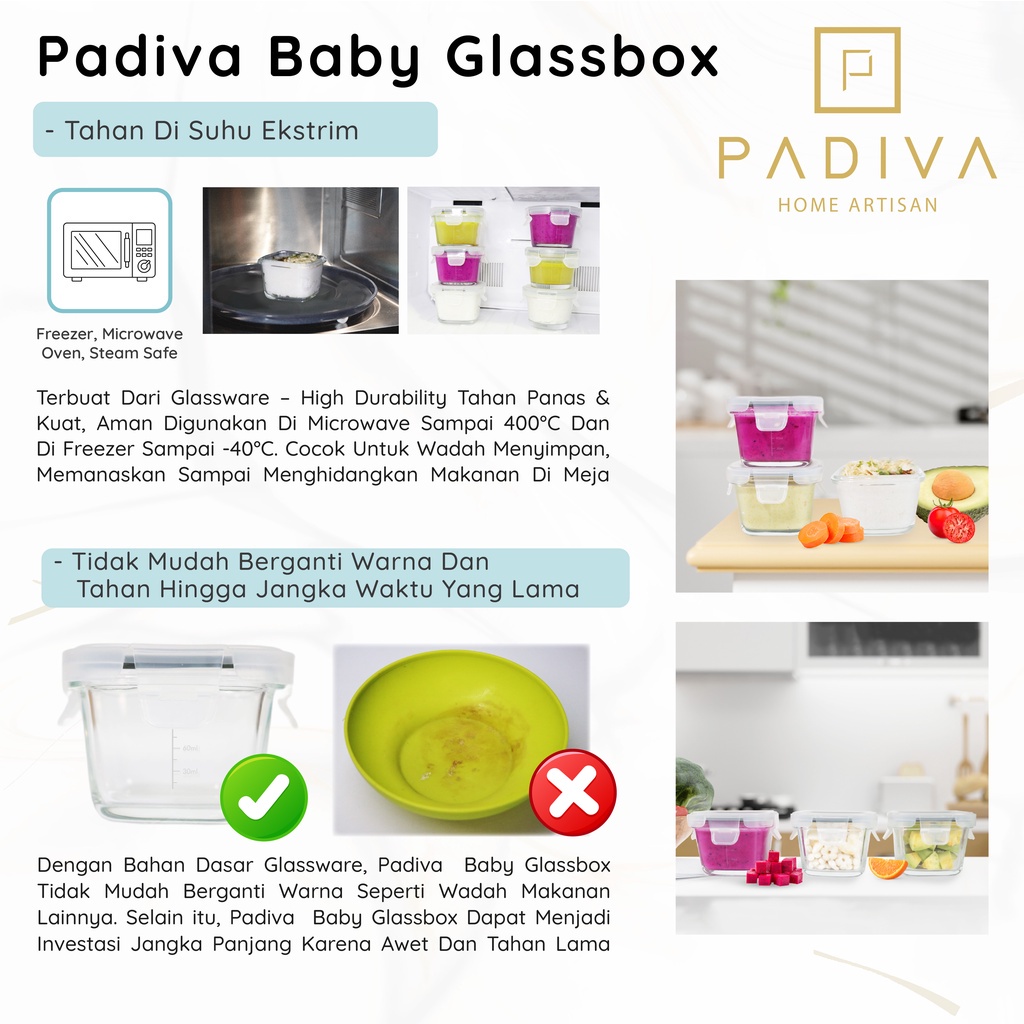 Padiva Baby Glassbox menjadi pilihan yang tepat untuk baby food container yang lebih sehat dengan harga terjangkau untuk pemakaian jangka panjang.