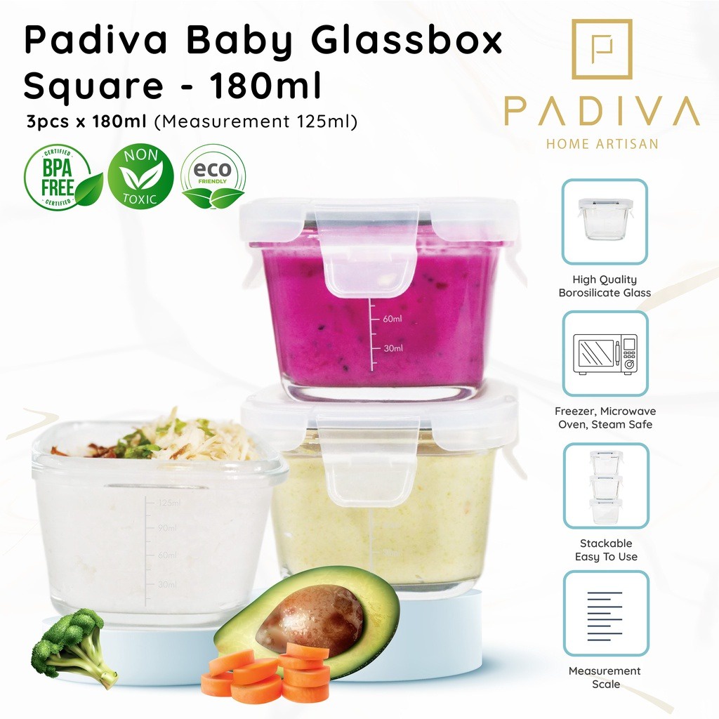 Padiva Baby Glassbox menjadi pilihan yang tepat untuk baby food container yang lebih sehat dengan harga terjangkau untuk pemakaian jangka panjang.