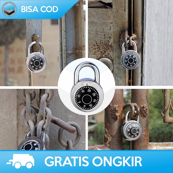 FITUR Seperti Brankas Desain dari gembok ini sangat simpel dan mirip seperti akses kunci brankas, yang mana menggunakan kombinasi angka sebagai pengamannya. Model password angkanya sendri tidak bisa direset. Kode angka tiap produk sudah ditentukan langsung oleh pabrik yang tertera pada bagian belakang fisik gembok.