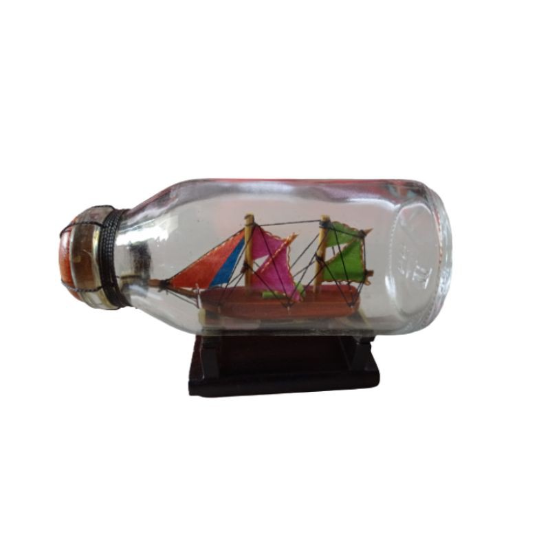 Hobi & Koleksi > Koleksi > Vehicle Model & Diecast > PAJANGAN MINIATUR KAPAL DALAM BOTOL LAYAR WARNA-WARNI UKURAN KECIL 10 CM - DEKORASI & SOUVENIR MURAH