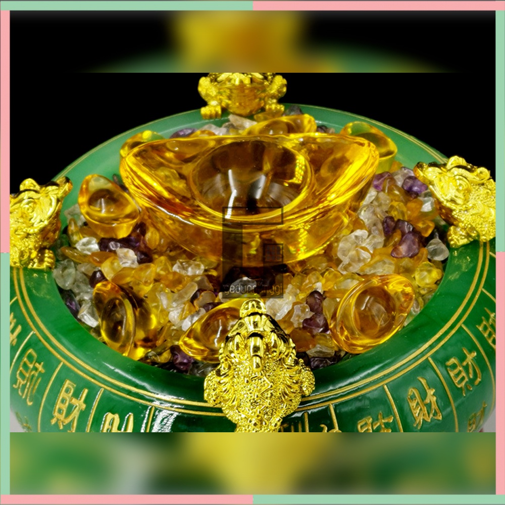 Pajangan Patung Tong Gentong Uang Yenpao Yuanbao Kodok Fengshui Buddha dapat ditempatkan di : Ruang Tamu Ruang Rapat Kerja Lobby Kantor Meja Kerja Etalase toko dsb