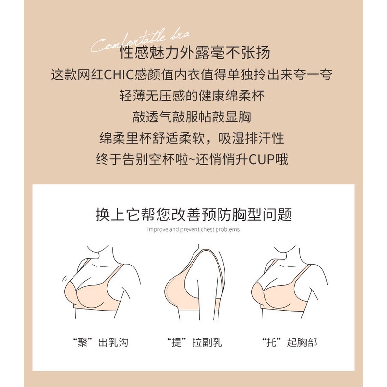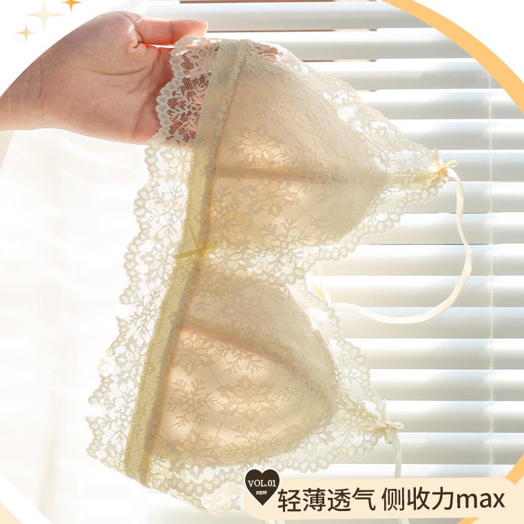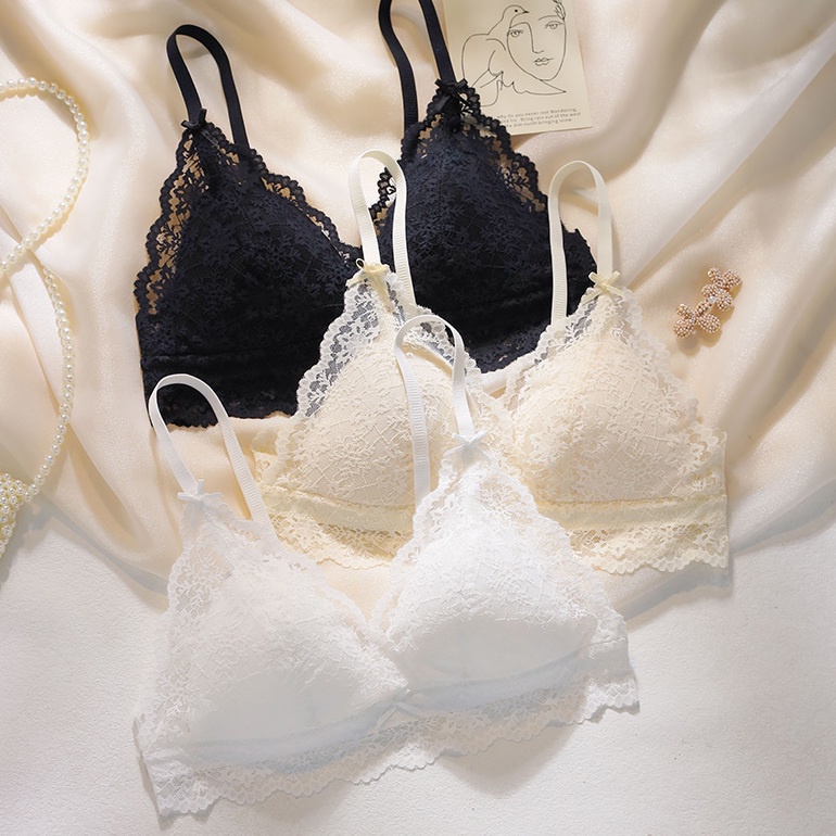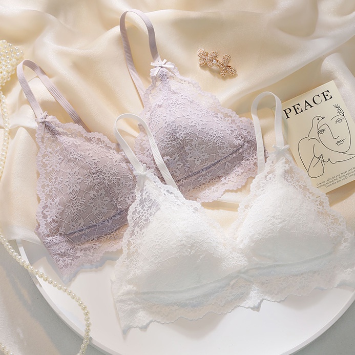 Detail Pakaian dalam musim panas bagian tipis tanpa bra renda cincin baja bra gadis-gadis dada kecil set br