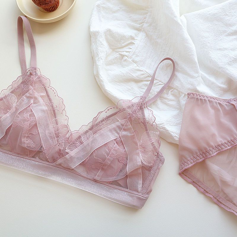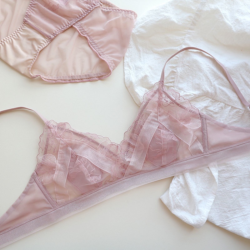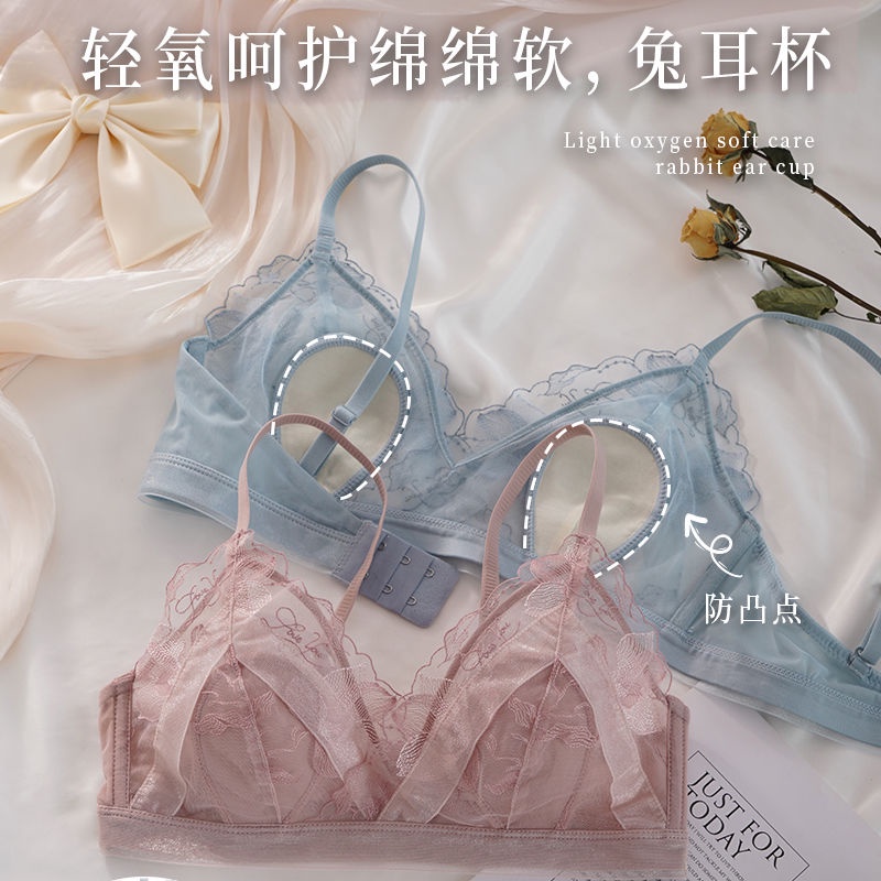 Detail Pakaian dalam wanita set telinga kelinci payudara besar menunjukkan set bra ultra-tipis kecil