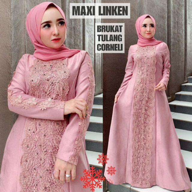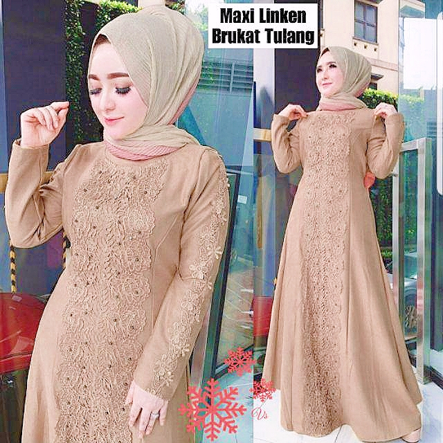 Detail PAKAIAN GAMIS WANITA MURAH BERKUALITAS/MAXI LINKEN 2 UKURAN L DAN XL/MATT MOSCREPE MIX BROKAT GLITTER