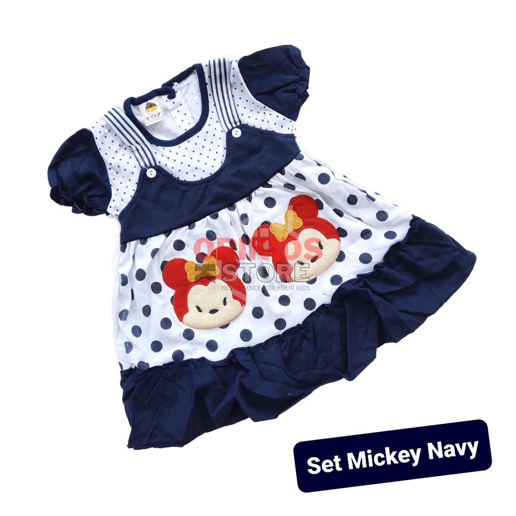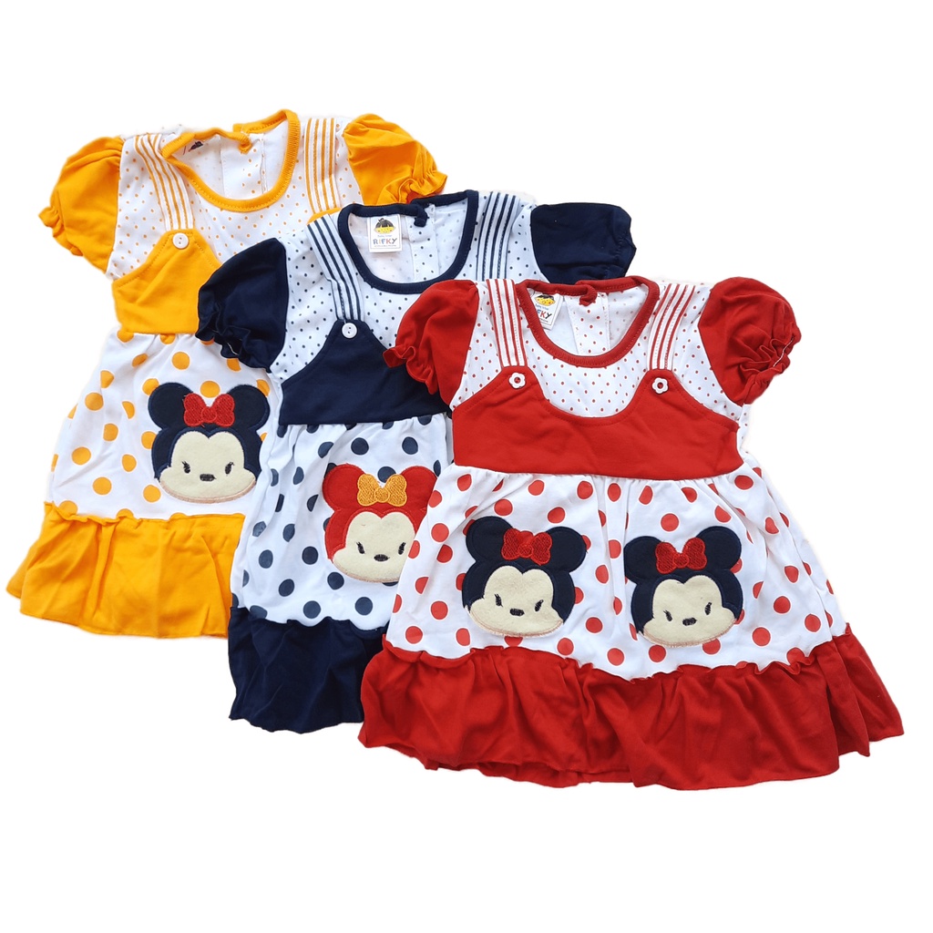 Detail Pakaian Gaun Bayi Perempuan 6 18 Bulan Lucu Imut bordir Mickey Leher Oblong Dress Harian Anak Cewek