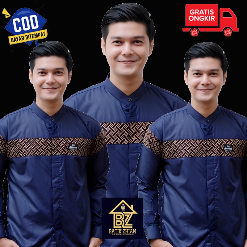 Pakaian Lebaran Pria Lengan Panjang Baju Koko Pria Dewasa Baju Muslim Laki-laki Motif Kobata Kombinasi Batik Terbaru