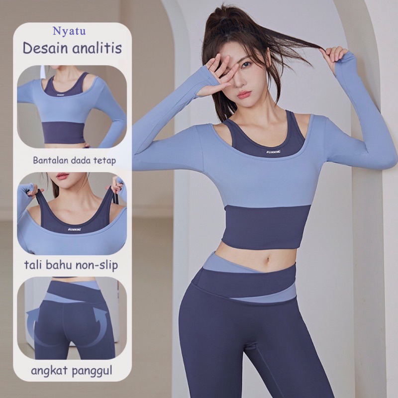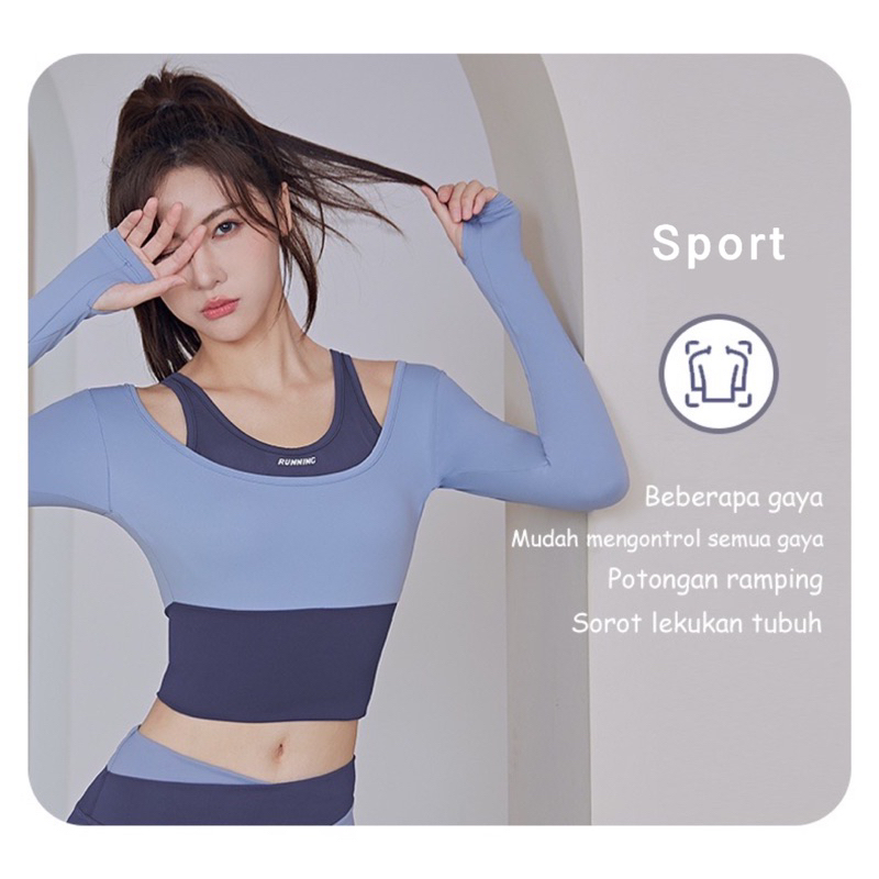 Detail Pakaian Olahraga Lengan panjang Gym Yoga Running Panjang