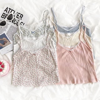 Gadis manis renda renda kecil V-neck bunga kamisol gaya keinginan murni atasan bottoming pendek