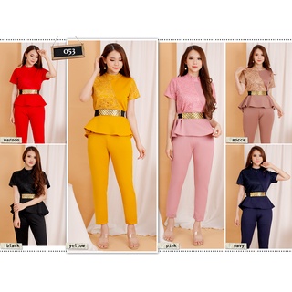 kathryn collection #007, stelan peplum crepe salur super celana panjang tangan pendek free belt