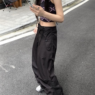 Suhao Longgar Kasual Celana Lebar Kaki Celana Musim Panas Workwear Vertikal Lurus Celana Tipis Pelajar Mengepel Celana Celana Panjang Serut Wanita