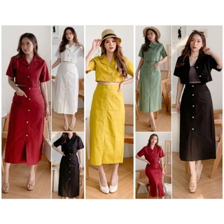 ❣️ SPECIAL PRICE ♡ PREMIUM ♡ ORIGINAL ! DANNISA 2 IN 1 BUTTON SET COLLAR CROP SHIRT WITH MIDI SKIRT / SETELAN KEMEJA PENDEK & ROK ( BUSUI FRIENDLY )