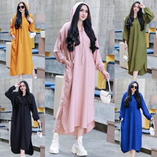 SMILE DRESS HOODIE Daster model terbaru bahan Rayon grade A midi dress jumbo LD 120 resleting depan saku kanan kiri busui friendly By MYQUEEN COLLECTION