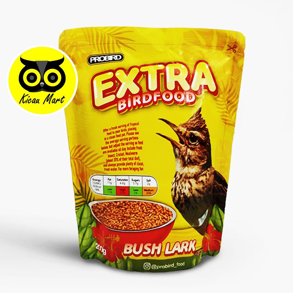 Nama produk : EXTRA BIRD FOOD BUSH LARK PROBIRD Kategori produk : Pakan/Food Berat isi : 200 gram Cocok untuk : Semua jenis branjangan
