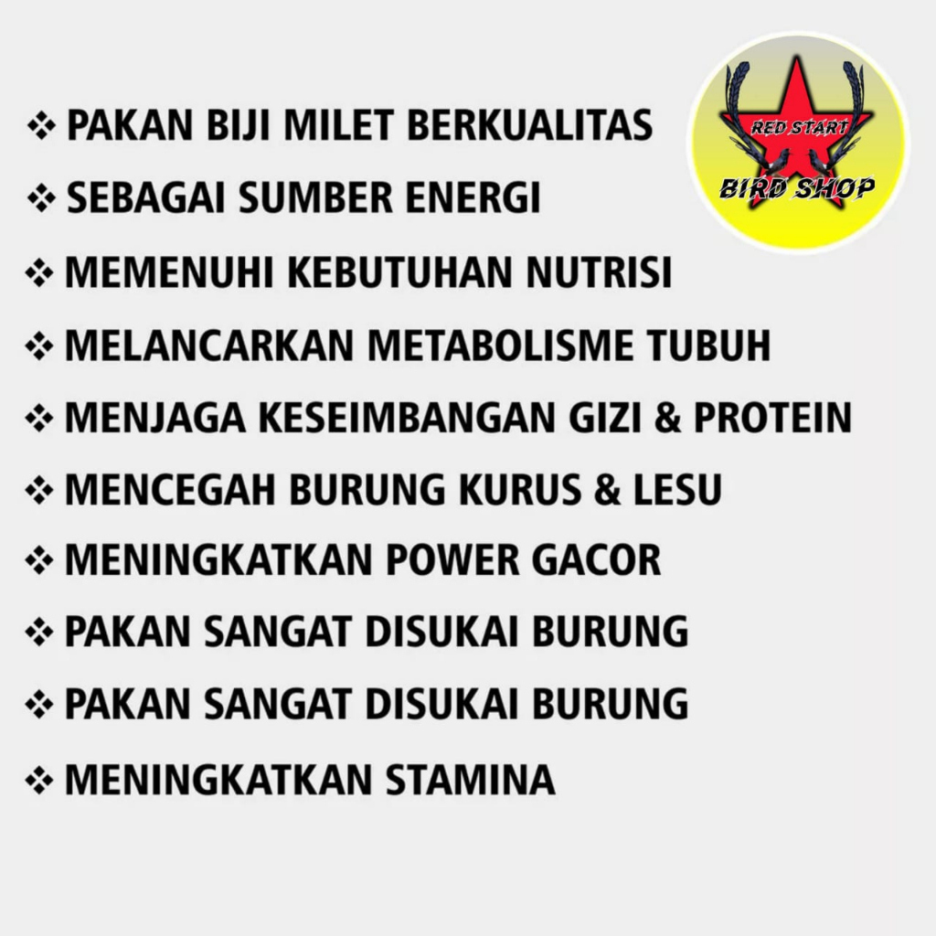 Kegunaan: Kombinasi sempurna bijian organic Pakan harian tepat bagi burung kesayangan Pakan sangat disukai burung Memenuhi kebutuhan nutrisi Memiliki Nilai Gizi Yang Tinggi Sempurna Tanpa Bahan Pengawet Menjaga & Meningkatkan Kesehatan Tubuh Kaya serat yang mampu melancarkan pencernaan burung Menstabilkan birahi burung