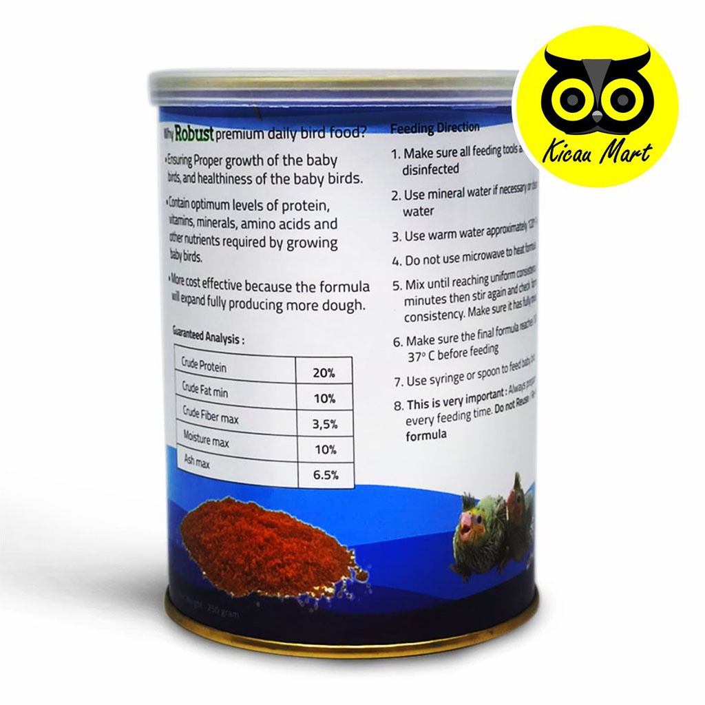 Nama produk : ROBUST PREMIUM HANDFEEDING FORMULA (250GR) Berat Bersih: 250gram