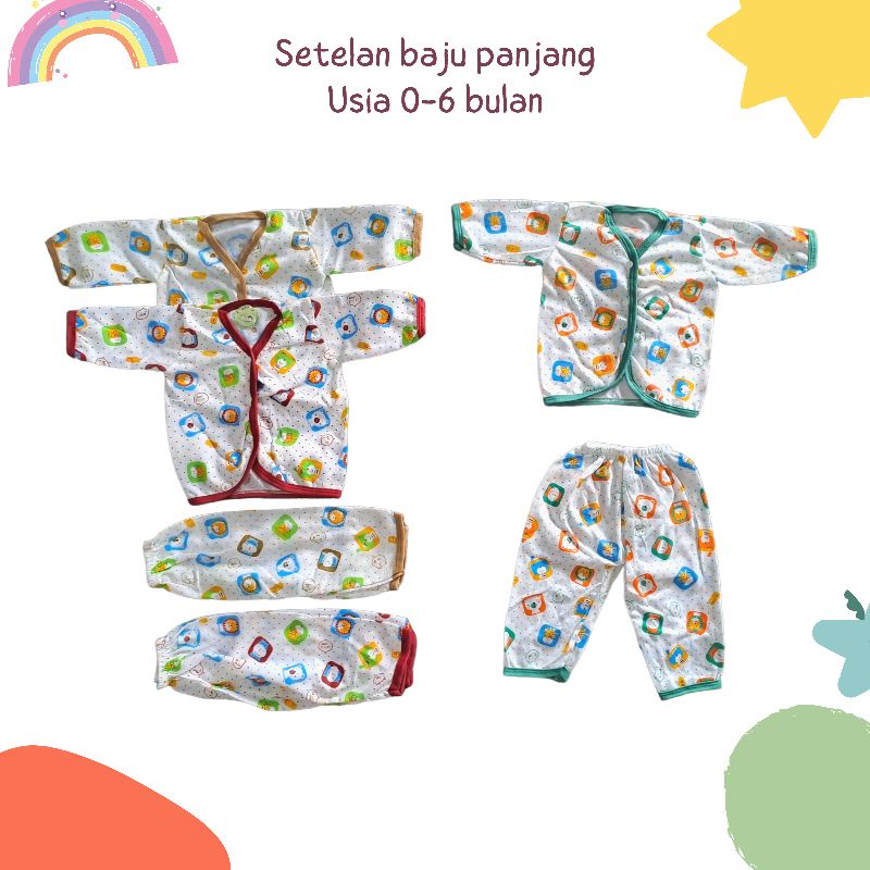 paket 6 pcs baju panjang motif (3 baju, 3 celana panjang)