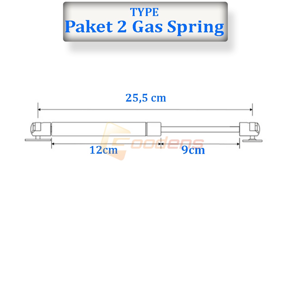 Paket terdiri dari 2pcs gas spring, 1 mur panjang dan 2 ring.