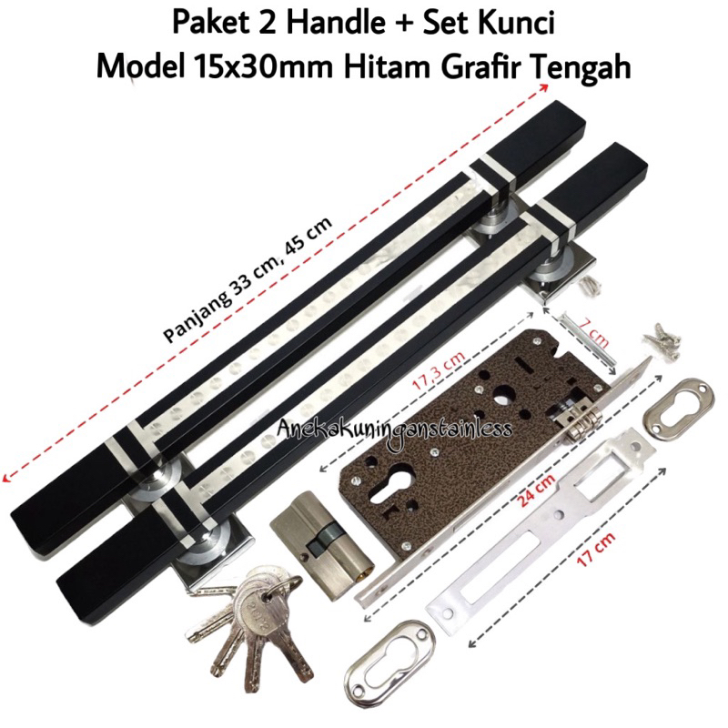 Detail paket 2 handle pintu set kunci model grafir tengah tarikan gagang pintu rumah minimalis pegangan handel hendel pintu rumah stainless antik karat